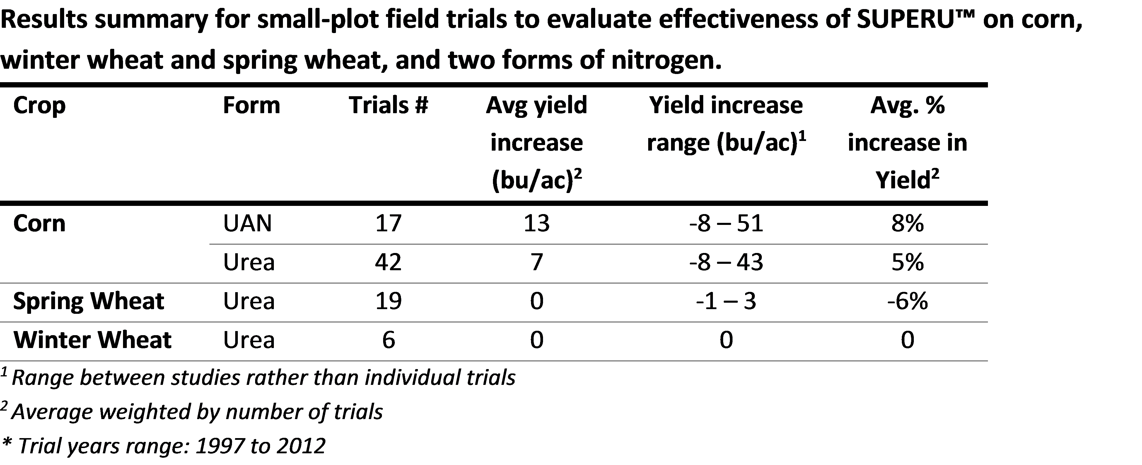 There is no overall wheat yield response to SUPERU™.